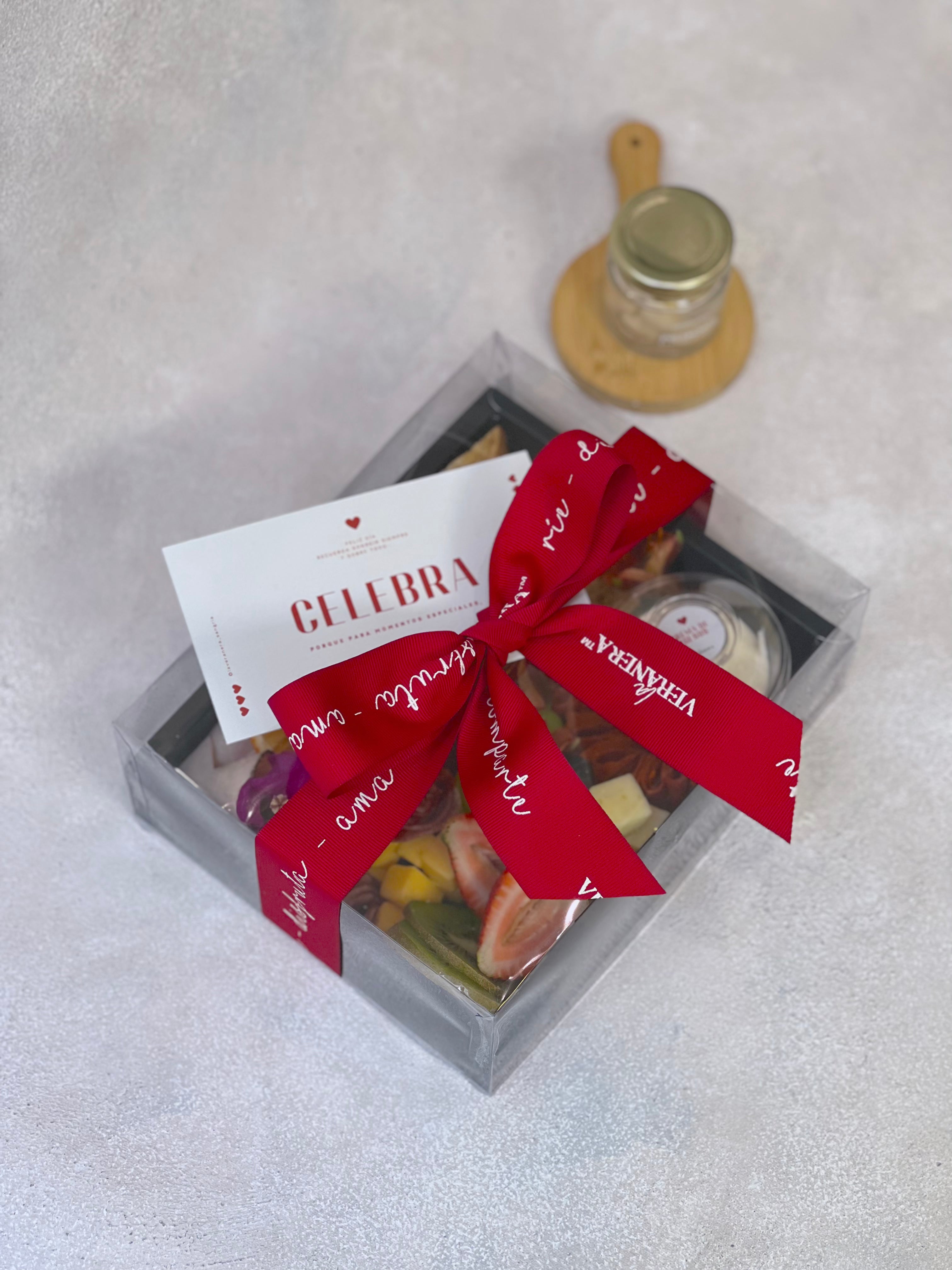 Un detalle fresco y elegante para regalar o disfrutar en amory amistad. Incluye pan de masa madre artesanal, dip de la casa, una selección de quesos (holandés y pepper jack), jamones premium (serrano, de pierna y pavo a las finas hierbas), salami napoli, chorizo vela y frutas frescas de temporada. Todo acompañado con flores comestibles y una tarjeta personalizada para hacer de este detalle un regalo único y lleno de sabor.